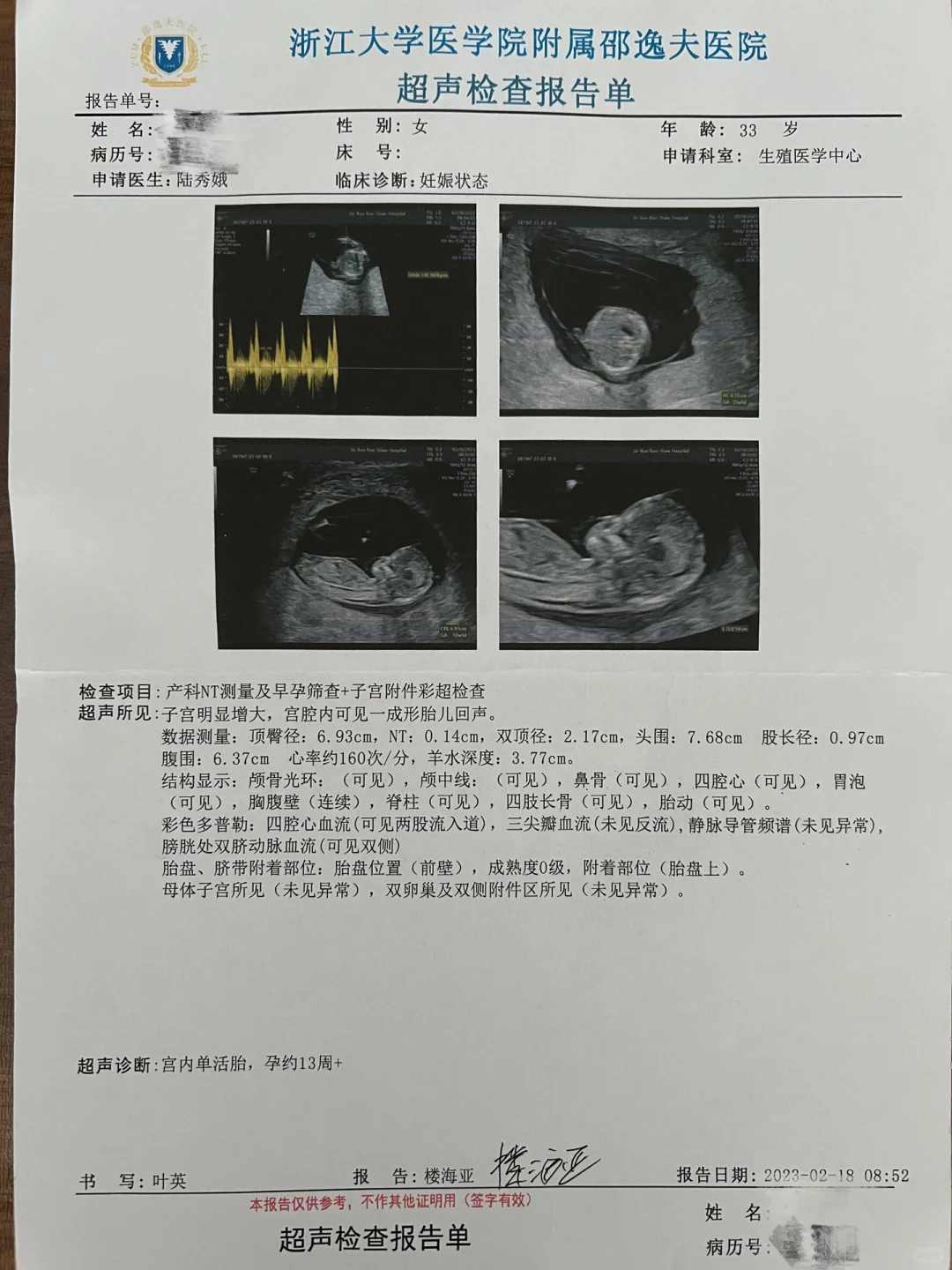 因为是周六所以医院人不多,我排在第4号,被叫到B超室后前面一个正在做,医生会让在帘子后面走动一下,每个人大概四五分钟吧。做好后医生说一切正常,所以就也没想着再问什么,拿了B超