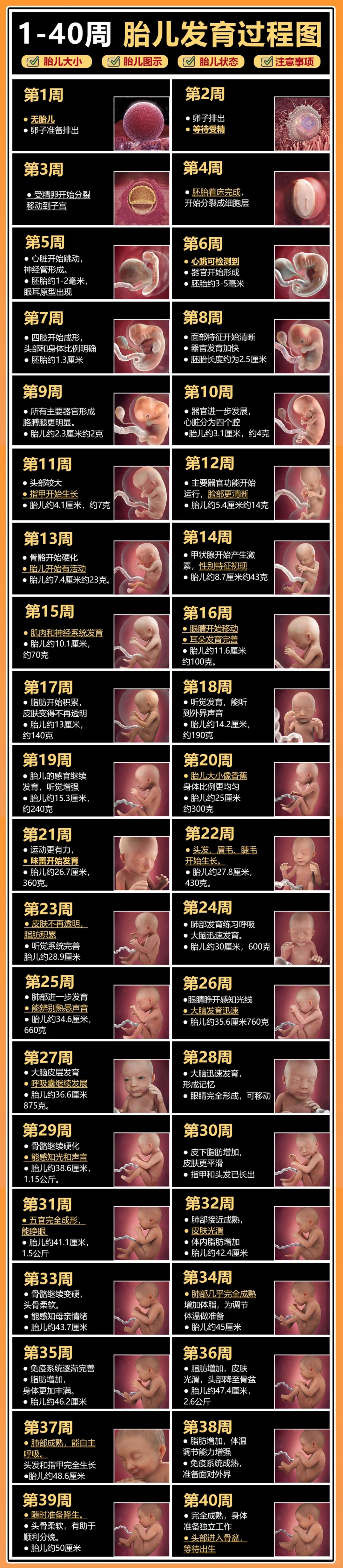 胎儿1-40周发育全图解:从受精卵到宝宝诞生的奇妙旅程