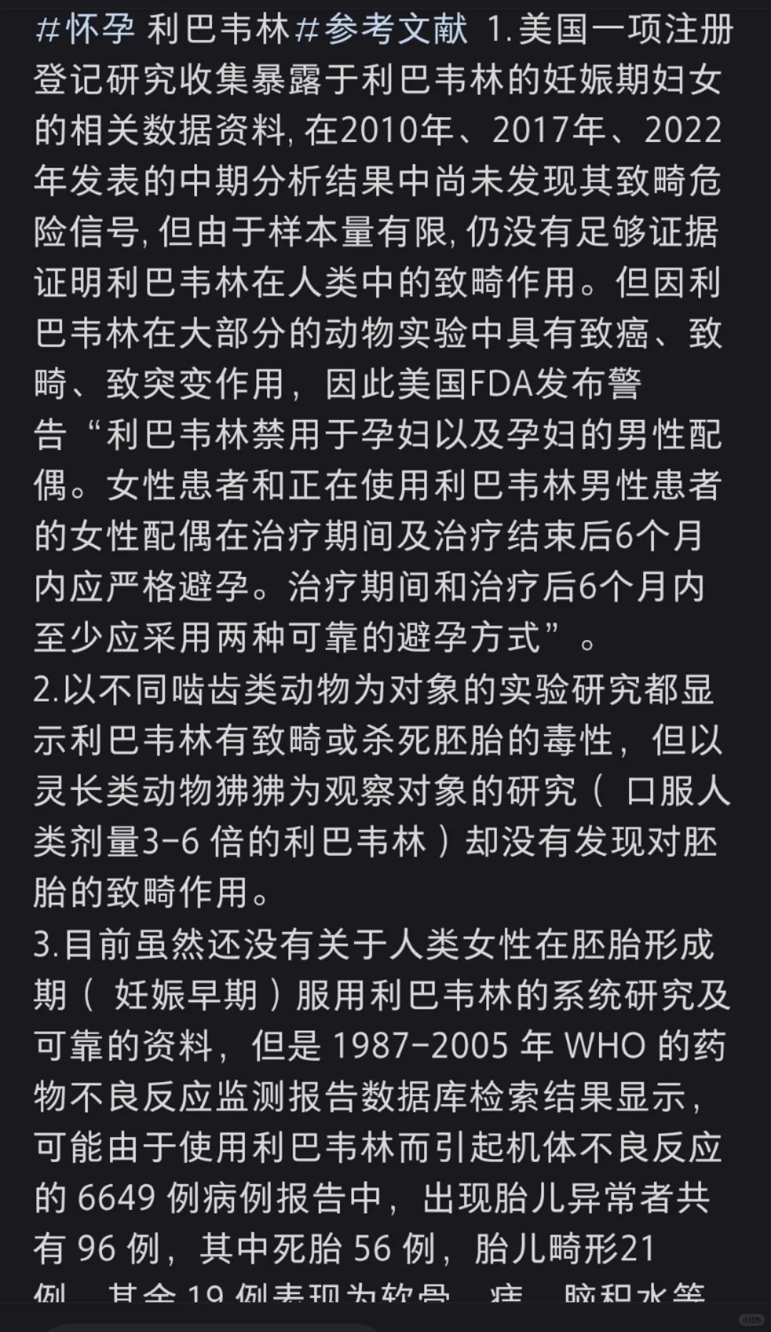 #怀孕 #利巴韦林 图片上的三段话是我让学生查到的关于利巴韦林的资料,每段概括起来就是: